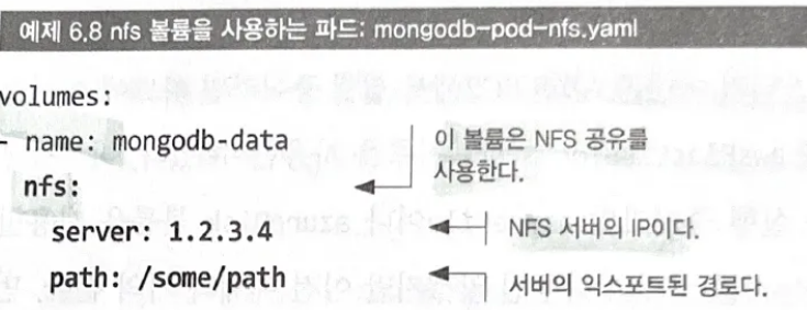 - nfs : NFS 공유를 파드에 마운트