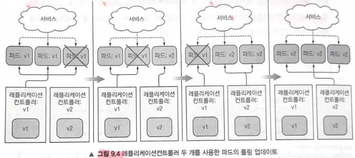 애플리케이션을 업데이트 할 때는 추가 레플리케잇녀컨트롤러를 도입하고 두 컨트롤러가 잘 조화되도록 조정해야 함.