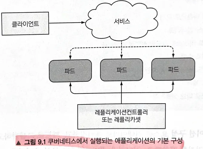 쿠버네티스에서 실행되는 기본 애플리케이션은 다음 그림과 같음.