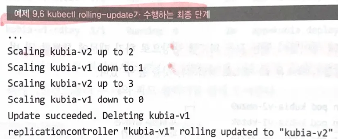 컨트롤러는 첫번째 파드를 만들고 kubectl은 이전 레플리케이션컨트롤러를 하나씩 스케일 다운함.