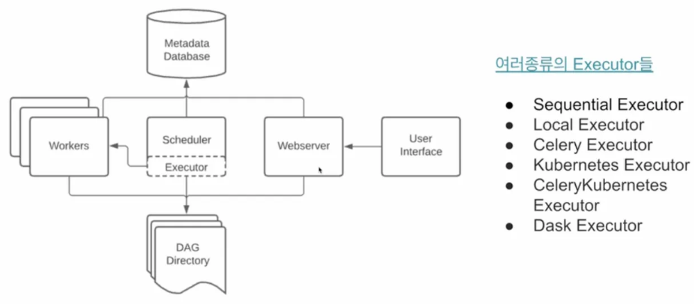 - 스케줄러와 각 DAG의 실행 결과는 별도 DB에 저장