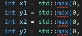 이 상태 일 땐 std::max 에러가 발생하지 않았었는데 아래처럼 windows.h를 추가하니까 std::max 코드 라인에 빨간 줄이 생기면서 에러가 발생했다.