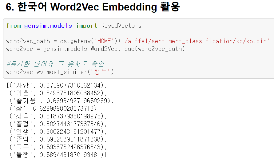 한국어의 미리 학습된 Word2Vec 모델은 박규병님의 깃허브 주소에서 다운받을 수 있다.
