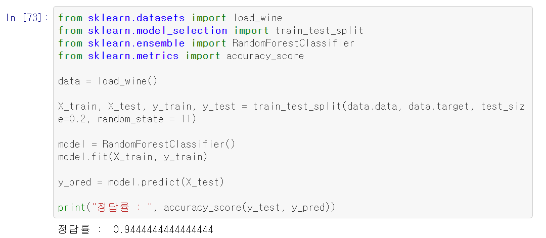 모델 학습 후 테스트 데이터로 예측을 하여 정확도(정답률)을 출력할 수 있다.