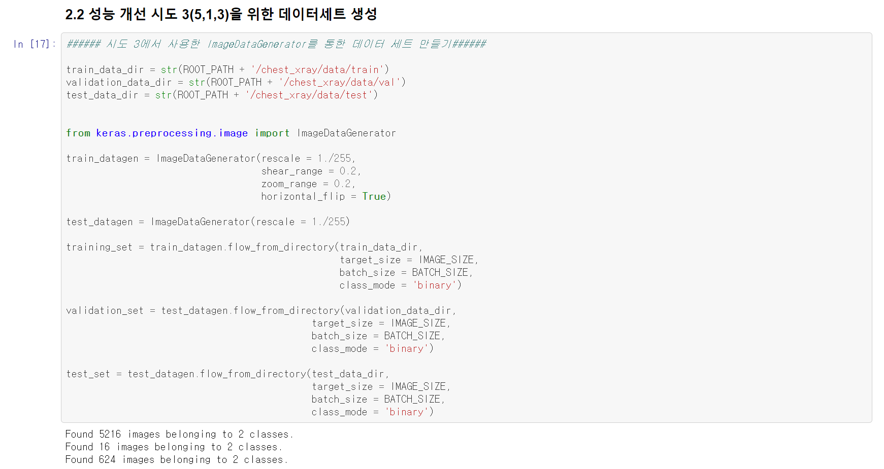 train 데이터셋과 test 데이터셋을 생성할 때 아래와 같이 ImageDataGenerator로 설정하였다.