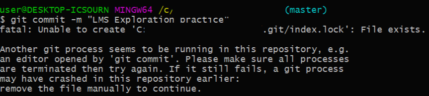 fatal: Unable to create 'C:/file_path/.git/index.lock': File exists.