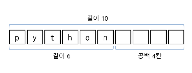 - ljust : 문자열을 지정된 길이로 만든 후 왼쪽으로 정렬하여 남는 공간을 공백으로 채우는 메서드이다.