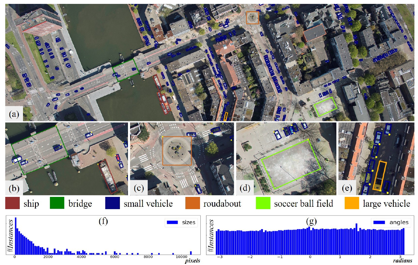 위성 이미지 object detection을 위한 좋은 데이터셋은 data-driven을 용이하게 하기 위한 상당한 주석이 달린 데이터여야하며 많은 상황별 정보를 포함하는 큰 이미지여야 한다. 또, 물체의 정확한 위치를 설명하는 OBB 주석이 있어야 하며 미지 소스의 균형이 맞아야 한다.