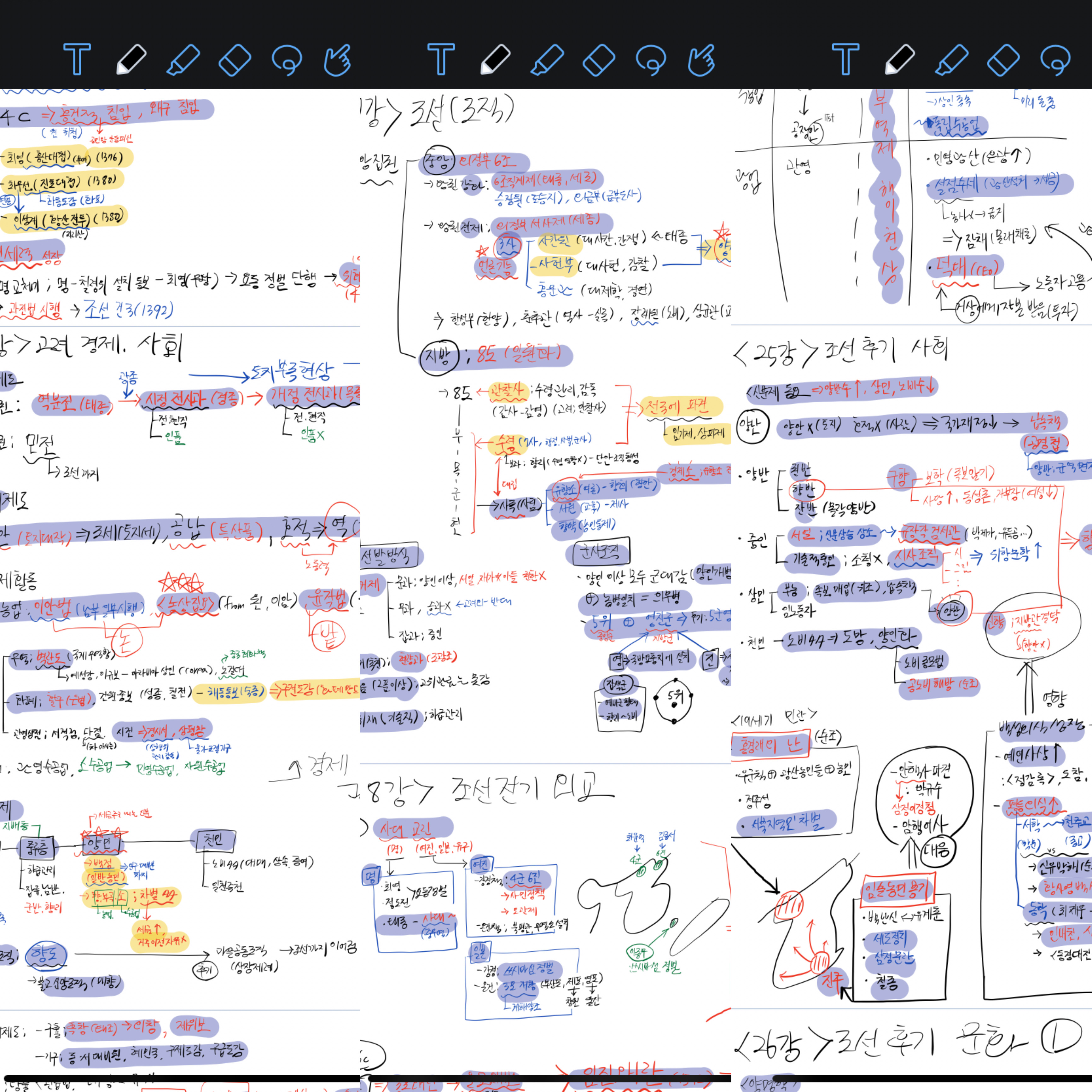 3회독으로는 이전 게시물(위의 링크)에서도 썼지만 별별 한국사 교재의 판서와 빈칸 채우기를 아이패드로 스캔해서 자체적으로 빈칸을 만들면서 개념을 처음부터 끝까지 훑었다. 물론 빈칸의 내용을 입 밖으로 말하면서 개념을 잘 알고 있는지 확인도 함께 했다.