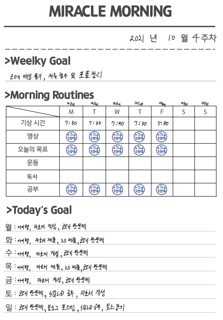 미라클모닝 스물다섯번째 주차 (2021.10 넷째주)