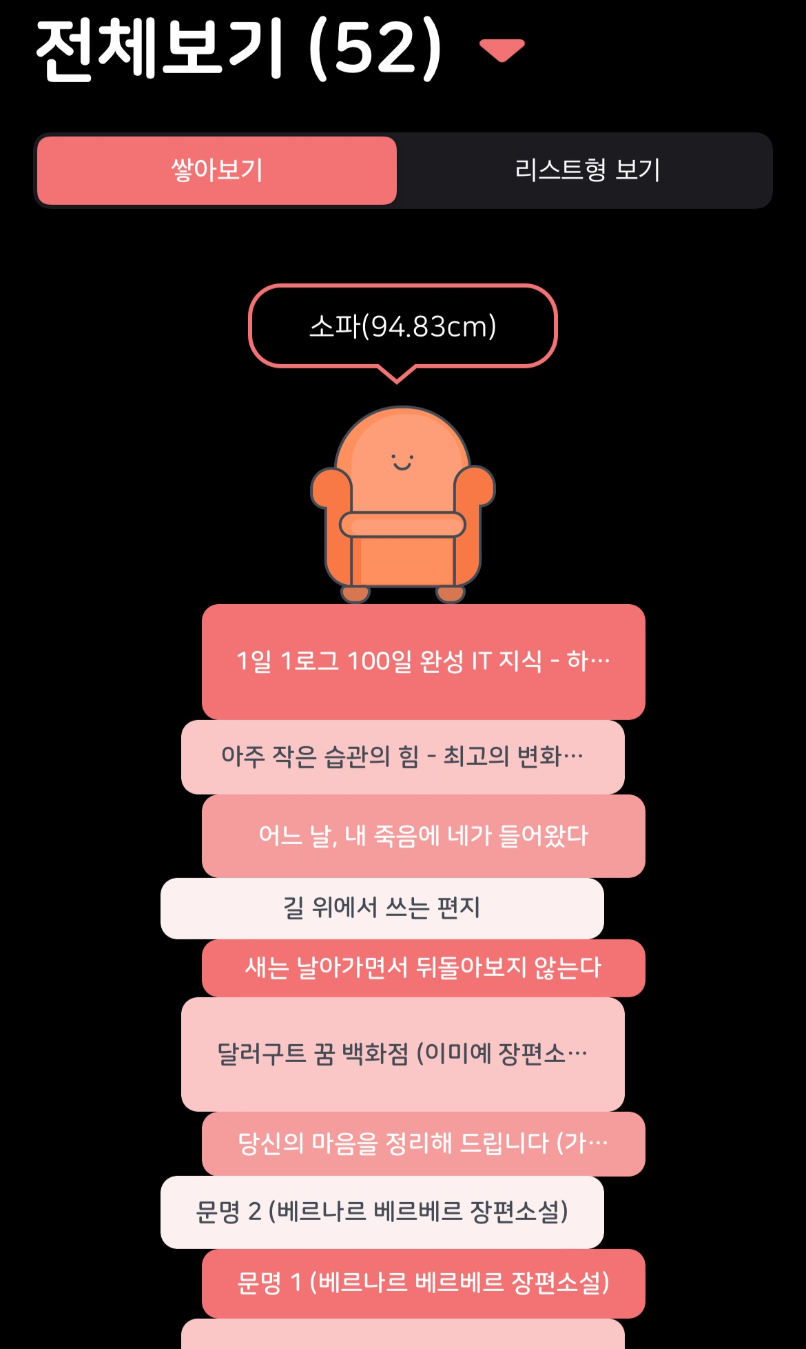 2022년 동안 읽은 책들을 독서 기록 어플인 북적북적이라는 어플에 기록했는데 어느덧 읽은 책의 권수와, 그 책들을 쌓았을 때의 높이가 곧 1m가 된다는 것을 알게 되었다.