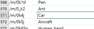 특정 class의 데이터셋을 다운로드 받기 위해 아까 다운로드 받은 엑셀 파일에서 원하는 class의 이름이 어떻게 지정 되어 있는지 확인을 먼저 했다.