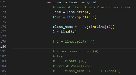 171 line에서 txt 파일로부터 class name을 받아오는데 Human face 같은 두 단어 이상의 class는 에러가 나더라.. 단어 사이에 공백이 있기 때문에 이를 해결하기 위해 임시 방편으로 위 부분을 아래와 같이 본인이 다운받은 class 이름대로 수정을 해 주었다...