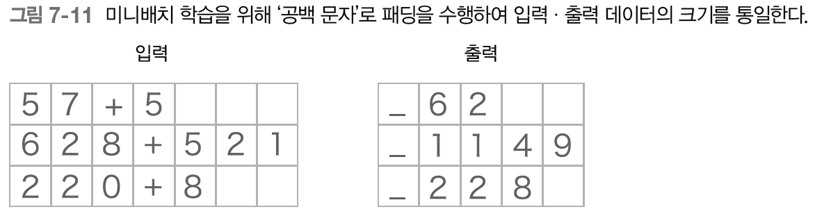 57+5와 같은 문자열을 seq2seq에 건네면 62라는 정답을 내놓도록 학습 시킬 것이다.