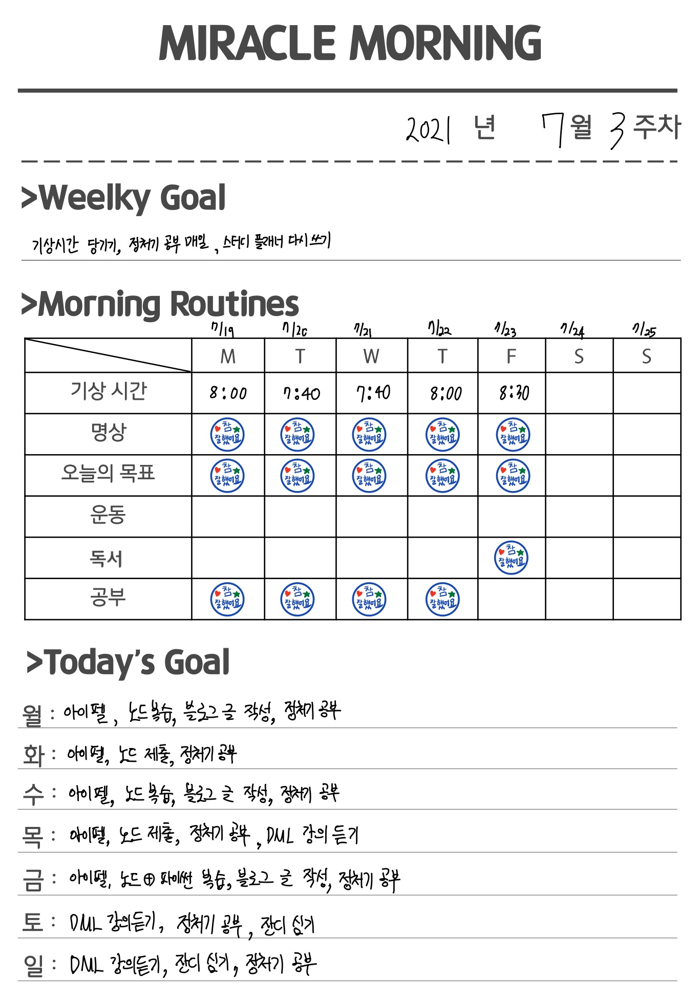 미라클모닝 열한번째 주차 (2021.07 셋째주)
