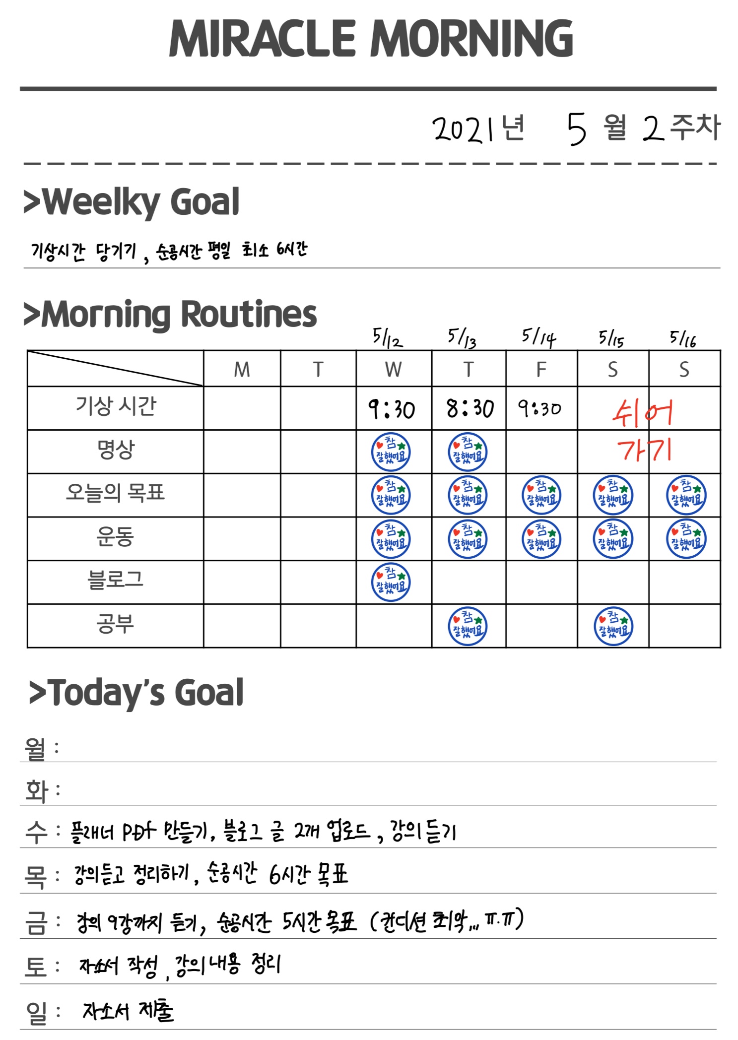 미라클 모닝 첫번째 주차 (2021.05 둘째 주)